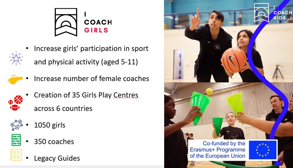 Research shows that girls are four times less likely than boys to engage in sport, with few girls meeting the WHO recommendations of daily physical activity with the associated risks for their physical and mental wellbeing. ICOACHGIRLS aims to promote and increase physical activity and sport amongst primary school age girls through the creation of “Girls Play Centres” in their local communities across six different countries